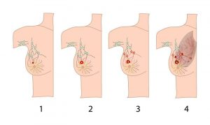 Breast cancer stages: As the cancer spreads to the nodes, the stage increases.